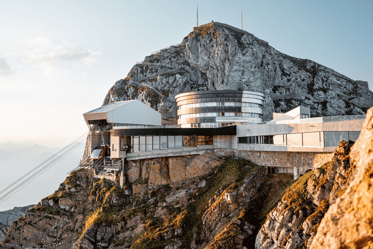 Dann geht es weiter mit der Panoramaseilbahn zum Gipfel des Pilatus. Oben angekommen, hast du einen außergewöhnlichen Blick über Seen, Bergketten und die Region Luzern. Dies ist der perfekte Moment, um in einem der Restaurants auf dem Berggipfel zu Mittag zu essen und die friedliche alpine Atmosphäre zu genießen.