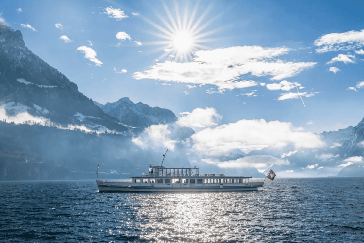 Während der Sommermonate kannst du mit der steilsten Zahnradbahn der Welt hinabfahren – ein wirklich einzigartiges Erlebnis, das dich mit unvergesslichen Landschaften nach Alpnachstad bringt. Von dort geht es mit einem traditionellen Boot auf eine entspannende Fahrt über den Vierwaldstättersee, die etwa 45 Minuten dauert und dich in Richtung des historischen Stadtzentrums bringt.