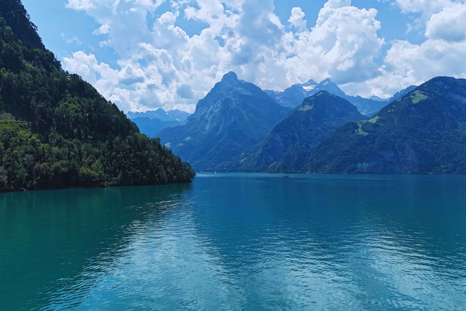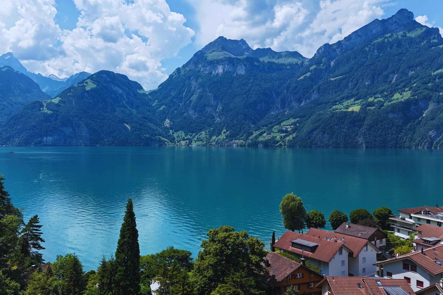 A continuación, visitaremos un pueblo a orillas del lago de Lucerna, donde el aire es más ligero y el ambiente es casi mediterráneo. Imagina palmeras, viñedos y picos alpinos que se elevan al fondo. Es perfecto para dar un paseo tranquilo y hacer fotos panorámicas.