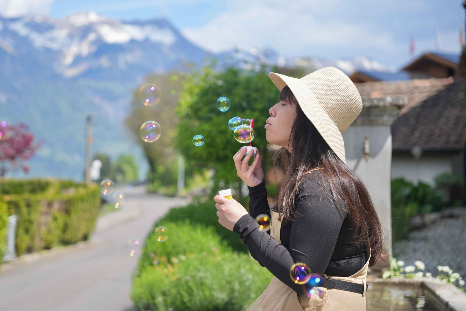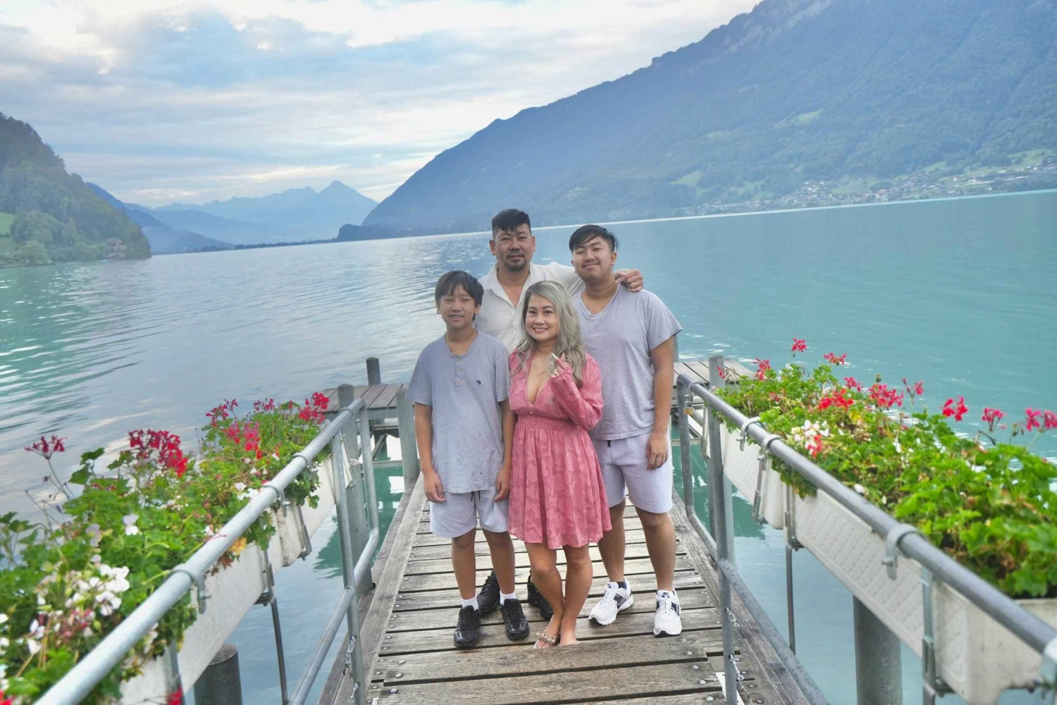La visite se poursuit à Interlaken, ville animée située entre deux lacs et entourée des célèbres sommets de la Jungfrau, de l'Eiger et du Mönch. C'est l'endroit idéal pour capturer l'essence des Alpes suisses.