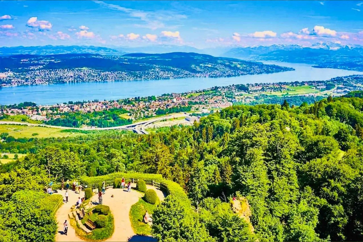 Naturskjønn fjellutsikt – Kjør til et nærliggende fjellområde, for eksempel Uetliberg eller Zürichberg, og nyt fantastisk panoramautsikt over byen, innsjøen og Alpene i det fjerne.