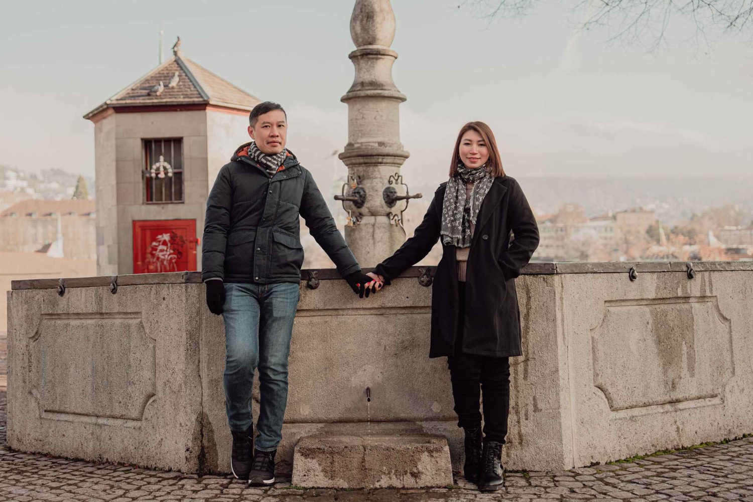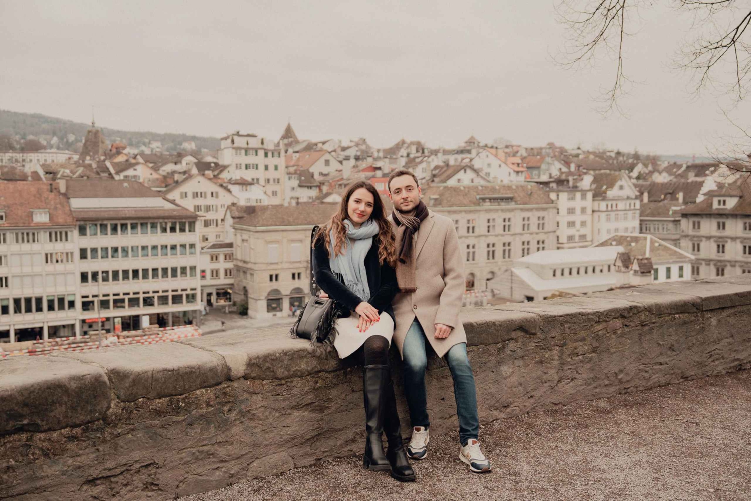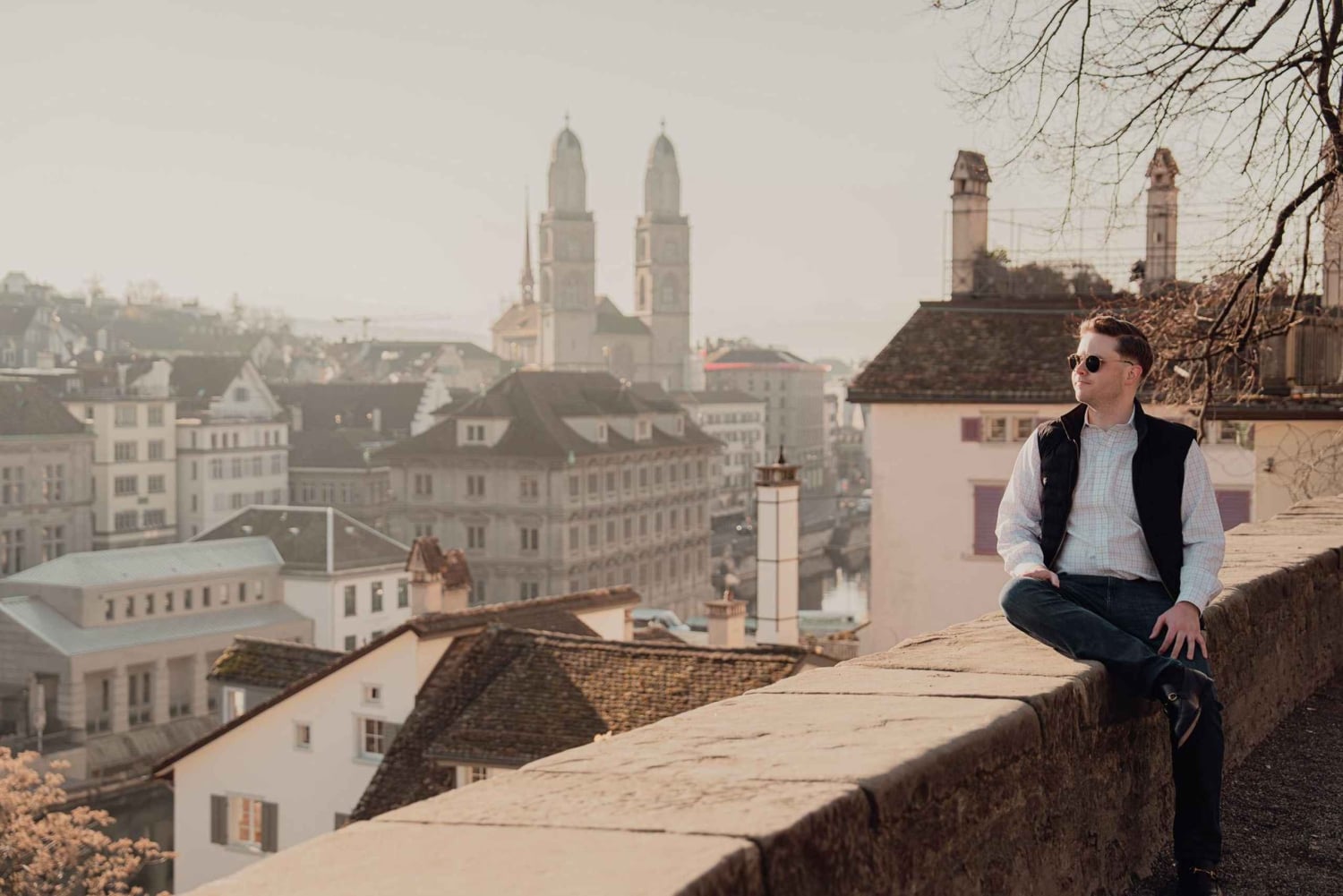 No coração de Zurique, onde o charme do velho mundo encontra a agitação moderna, há um local conhecido pelos habitantes locais como Lindenhof. Com seu charme histórico e vistas deslumbrantes, Lindenhof é o local ideal para sua sessão de fotos. Do nosso ponto de vista, podíamos ver as torres das igrejas antigas, os telhados intrincados dos edifícios e o rio Limmat, com suas águas claras e verdes, refletindo a luz da manhã. A tranquilidade do lugar era interrompida apenas pelo chilrear ocasional dos pássaros e pelo zumbido distante da cidade que acordava.