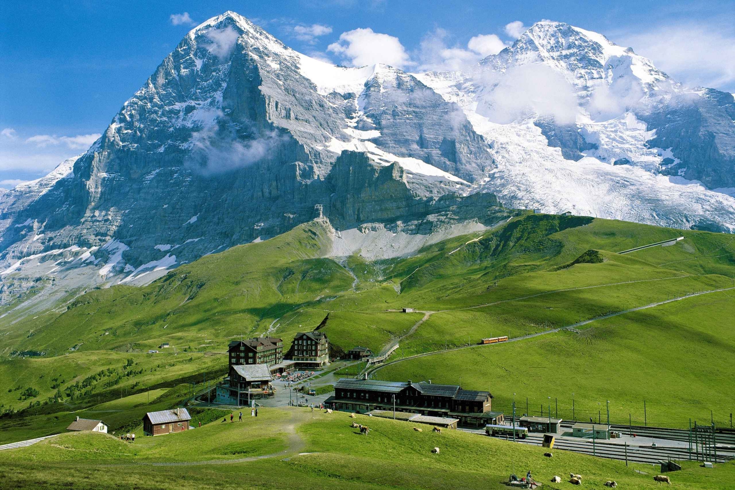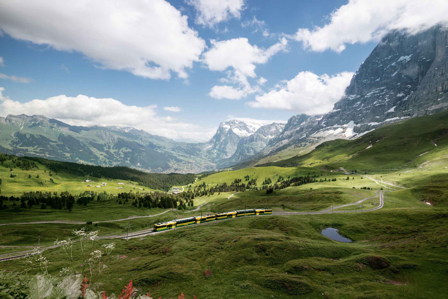 Отправляйтесь в путешествие на высоту 2061 метр над уровнем моря на зубчатом поезде. Полюбуйтесь захватывающим видом на величественные вершины гор Мёнх и Юнгфрау, а также впечатляющий северный склон горы Эйгер.