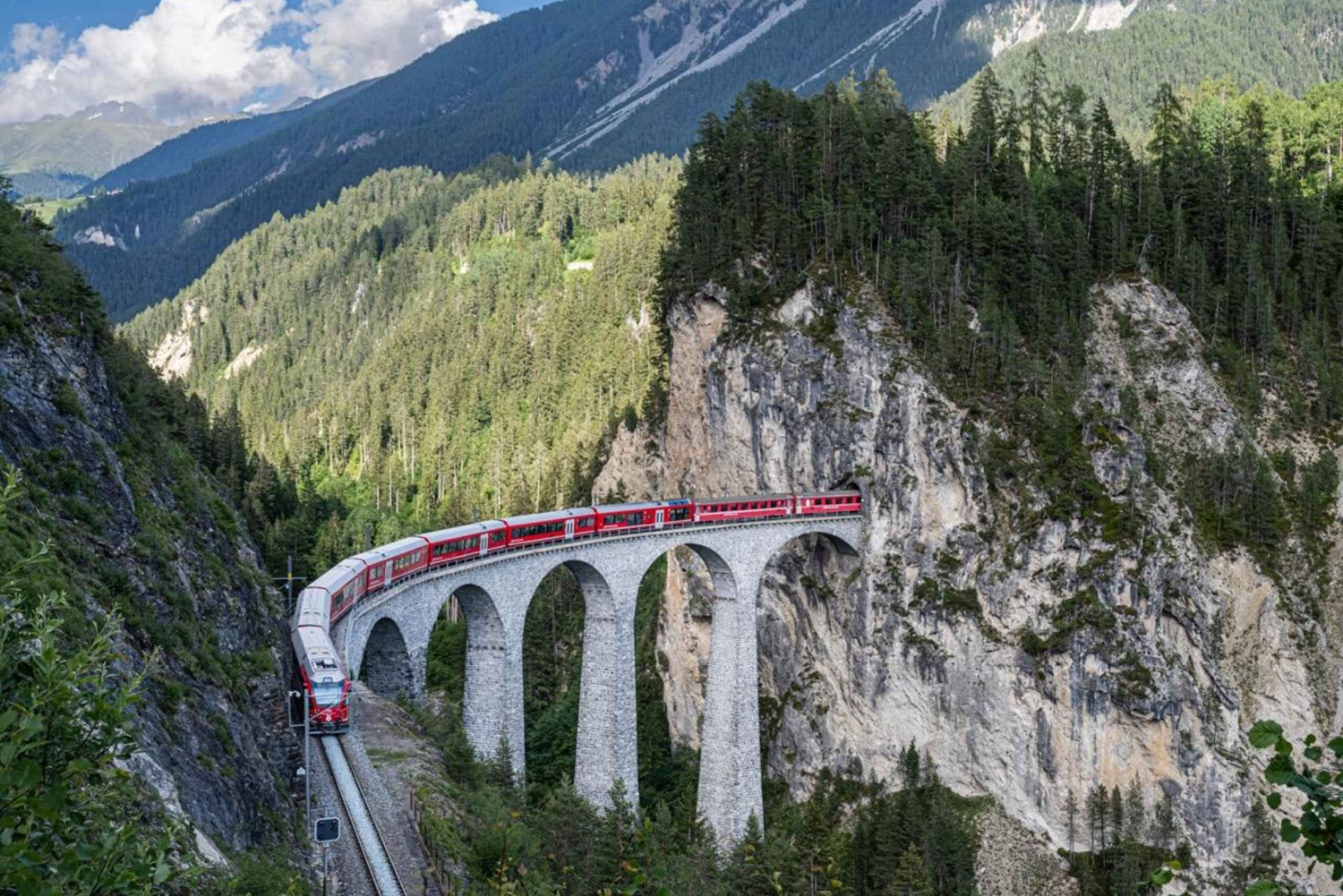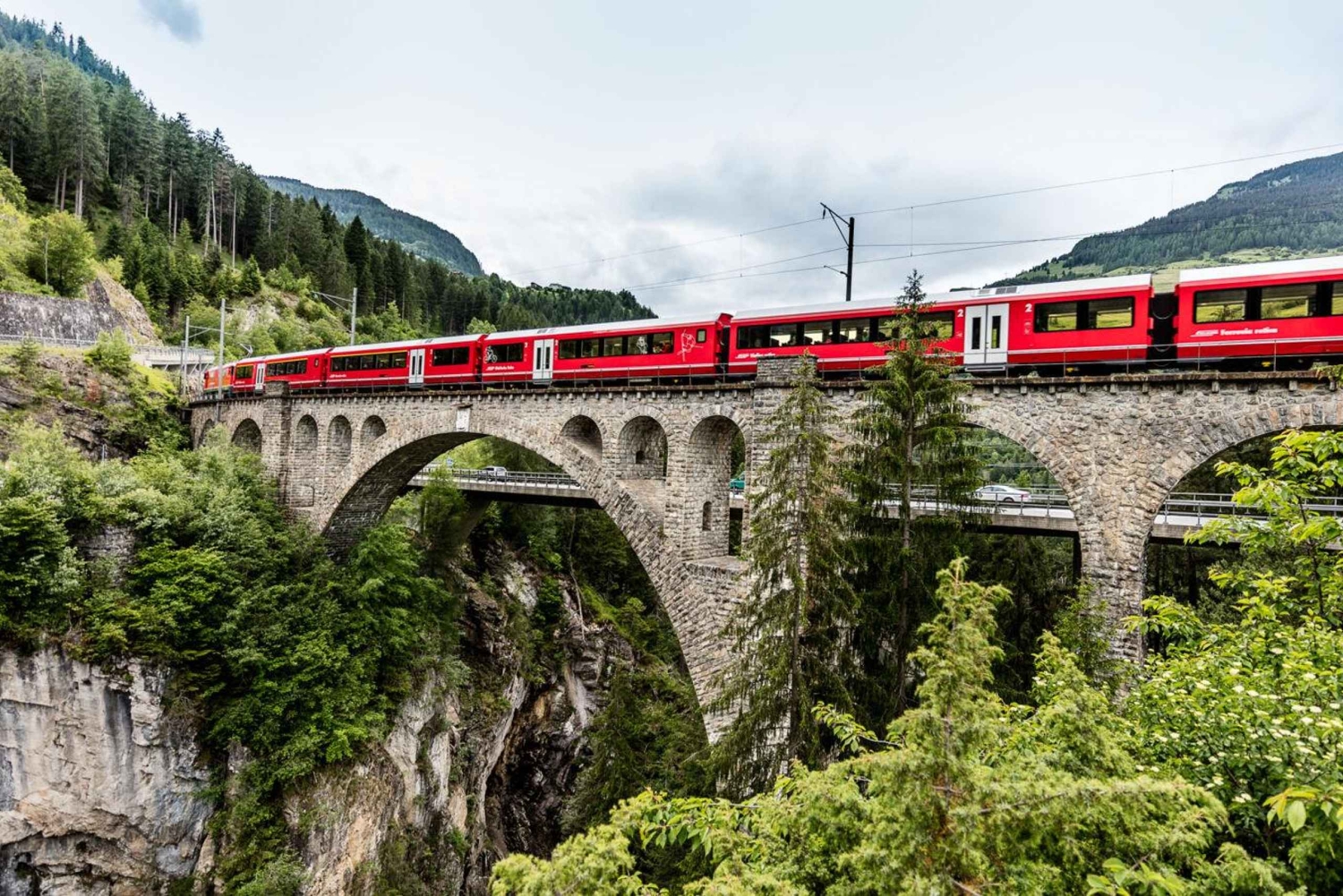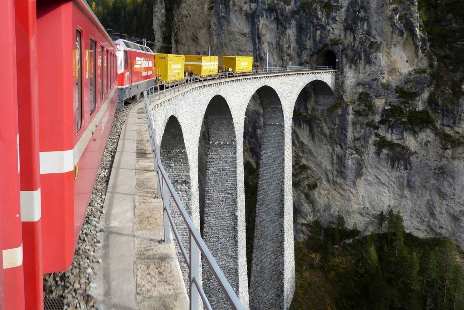 Насладитесь живописным путешествием на поезде по исторической Ретийской железной дороге в Санкт-Мориц. Мориц. Остановитесь у виадука Ландвассер, внесенного в список ЮНЕСКО, посетите железнодорожный музей Альбула и исследуйте город Санкт-Мориц.