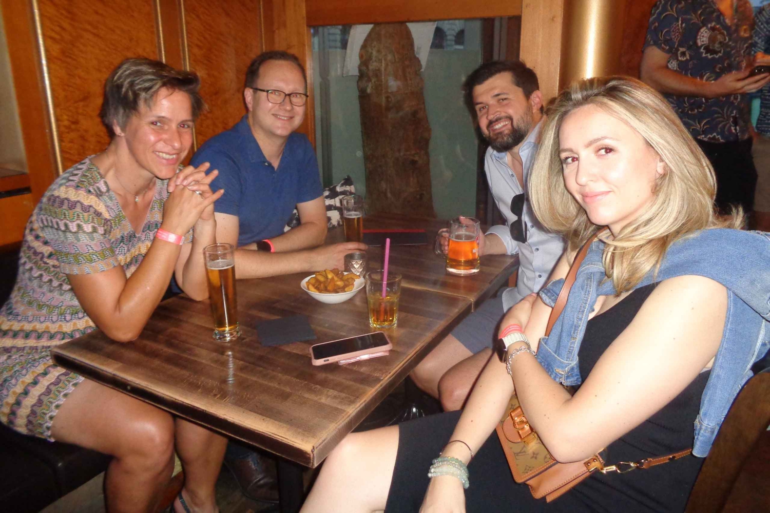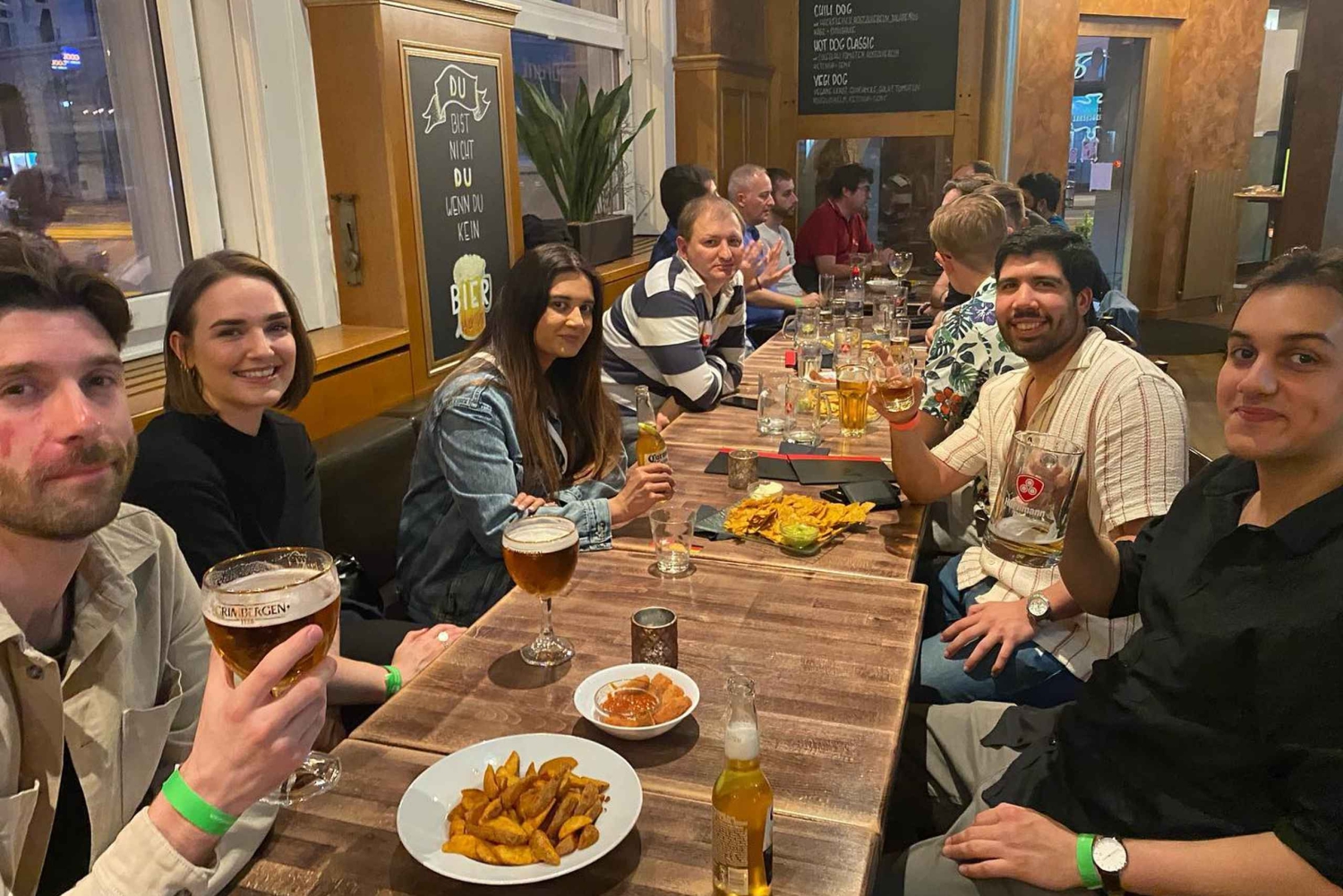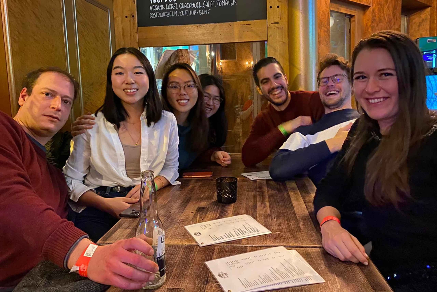 По прибытии вас встретит ведущий мероприятия и предложит выбрать наклейку с флагом страны. Этот флаг поможет другим узнать, на каких языках (кроме английского) вы говорите, чтобы вы могли легко подключиться. Путешественники, эмигранты и местные жители будут присутствовать на мероприятии с целью пообщаться, познакомиться с новыми людьми и весело пообщаться. В течение этого двухчасового мероприятия вам будут предложены различные закуски. После мероприятия у вас будет возможность присоединиться к туру по ночной жизни Pub Crawl за дополнительную плату.