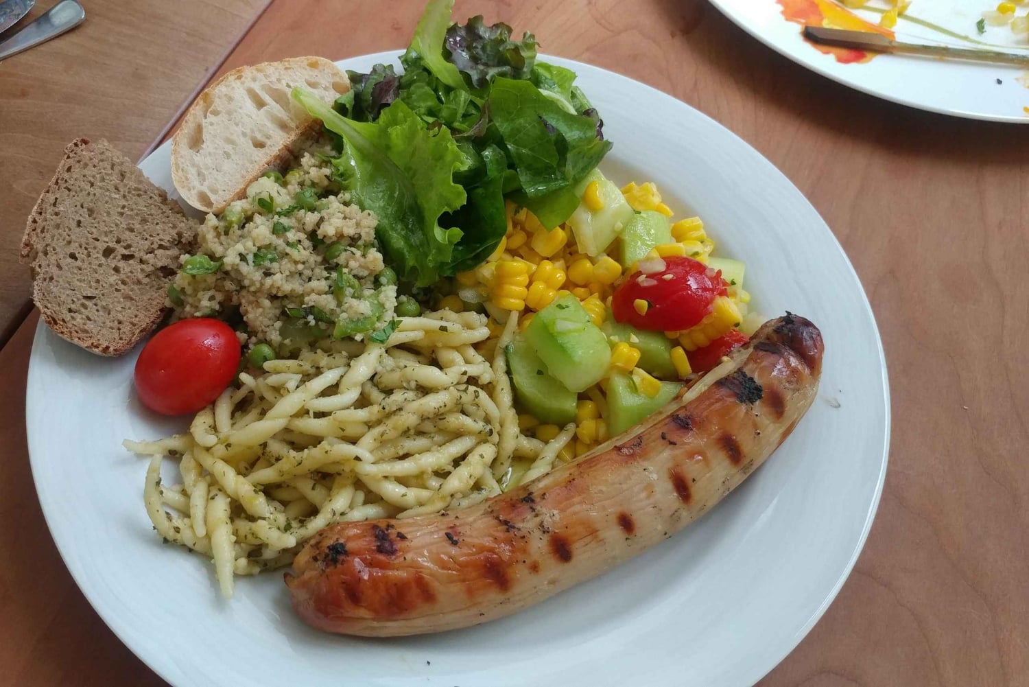 Njut av äkta hemlagad mat som lagas av en lokal schweizisk familj som brinner för välsmakande, hälsosam, färsk och ekologisk mat. Titta på matlagningen och lär dig nya recept eller koppla bara av med ett glas vin i det vackra, moderna köket medan du väntar på att maten ska serveras. Om vädret tillåter kan du koppla av eller äta i den rymliga trädgården. Om du vill kan du hjälpa till att plocka grönsaker eller frukt från trädgården som används för matlagning.